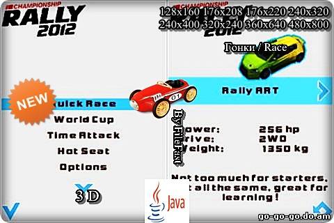 Новейшая версия раллийных гонок возвращается в суперреволюционной форме! Год выпуска/Year of issue: 2012 Жанр/Genre: Гонки / Race Категория/Category: Java игры/Java games Размер экрана/Screen size: 128x160 176x208 176x220 240x320 240x400 320x240 360x640 480x800 Разработчик/Developer: Connect2Media Платформа/Platform: Java Формат файла/File format: .jar Вид устройства/Appearance of the device: для телефонов/for phones Язык интерфейса/Interface language: английский (ENG) Размер/Size: 7,51 Mb Поддержка/Support 3D: есть/there are Статус игры/The status of the game: бесплатная/free Подготовил/Prepared by: FileFast